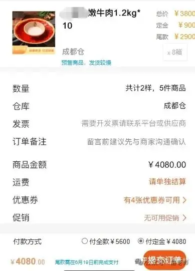 - 顾客支付定金的时候大概率会用优惠券,付尾款时应限制其再次用券(否则平台容易亏本)。