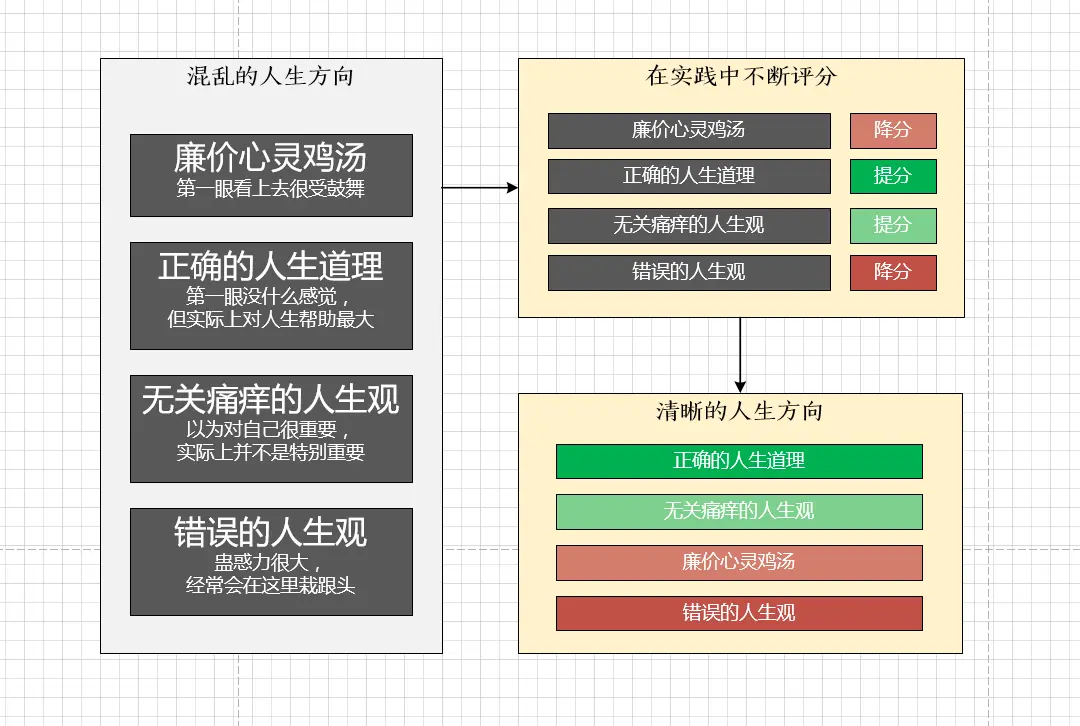 ——这要求「the App」必须拥有一套价值衡量体系,能精准地衡量不同人生观之间的优劣,帮用户淘汰掉那些劣质的心灵鸡汤和错误价值观,找到那个(或若干个)对自己最重要的人生方向,每天提醒自己来坚持。