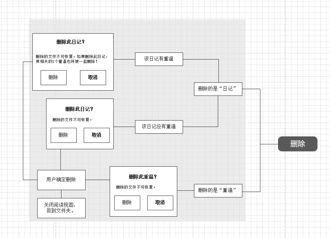 而至于“删除”功能就更简单了,画上一个流程图,它就是一个直接能翻译成代码的状态机。不管删除的是感悟还是信念,实际上只是一开始走的支路不同,而且这些支路仅限于前端展示,当状态机走到后端层面时,其实处理的逻辑都是完全一样的。