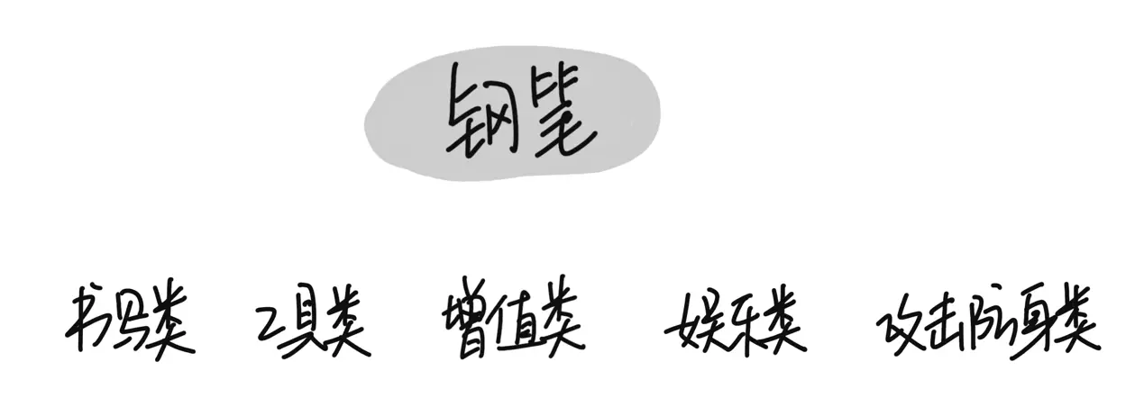 前面讲的方法是直接从“笔”本身的用途来思考和分类的,还有一种方法是从用户的角度展开思考,也就是「谁来用」。