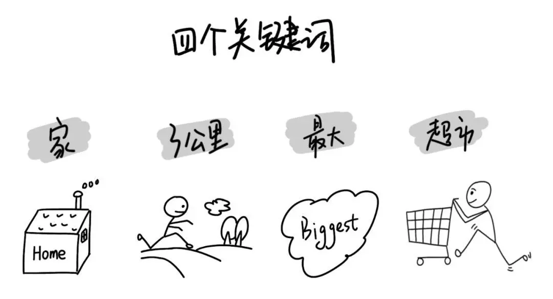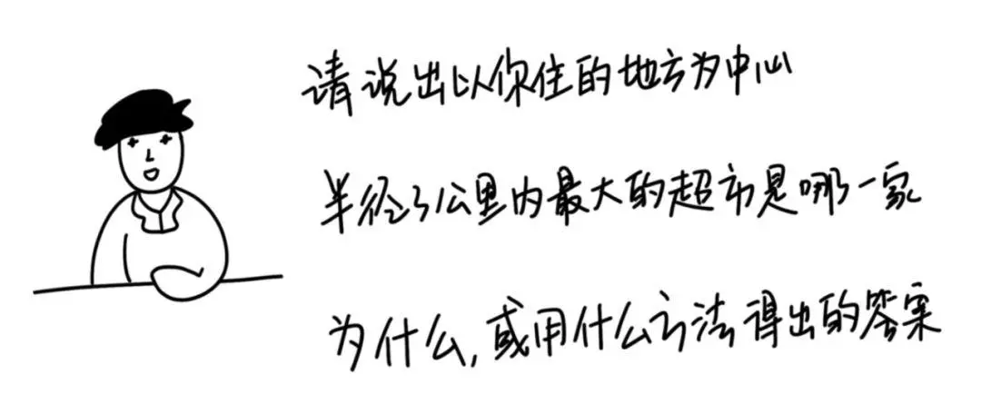 做产品,一定要比旁人有更深的洞察,不能错过任何一个信息,这道题的题干有四个关键词:你家、半径3公里、最大、超市。